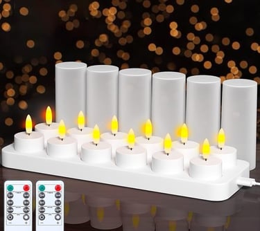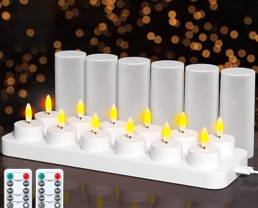 12pcs Rechargeable Tea Lights, LED Flameless Tealight Candles with Charging Station & Frosted Cups, Remote Control Tea Lights for Room Table Halloween Christmas Decor