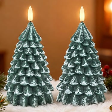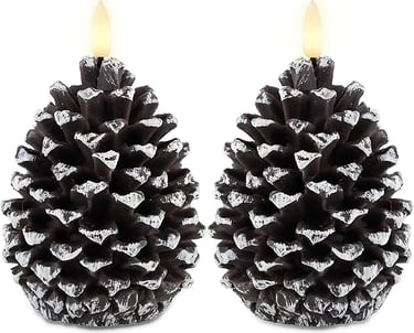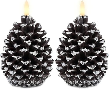 2 Dark Brown Flameless Pine Cone LED Candles with Timer Function for Christmas, Real Wax Battery Operated Candles for Winter Decoration - D 3.55" - Set of 2