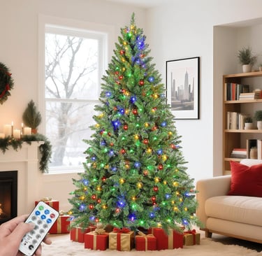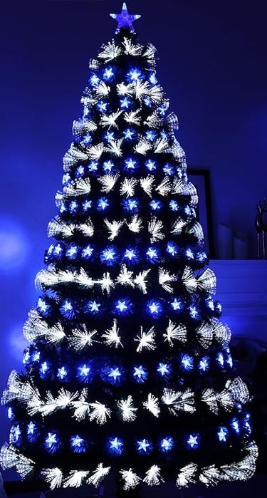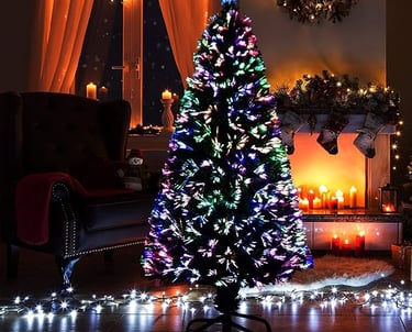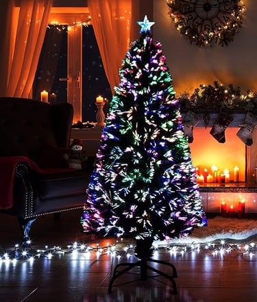 These trees feature built-in, color-changing LED lights and optic fibers that create a vibrant and festive ambiance.