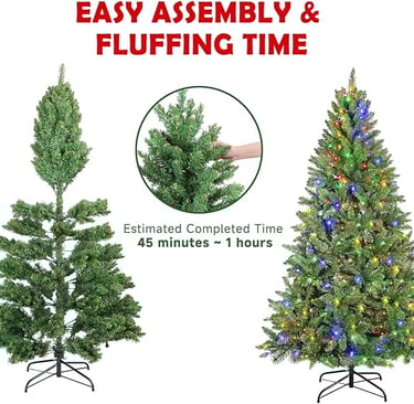 Pre-Lit Artificial Christmas Tree, Premium Hinged Pine Christmas Tree with 300 Multicolor LED Lights, 1000 Branch Tips, Metal Stand, 11 Lighting Modes for Home, Party Decoration