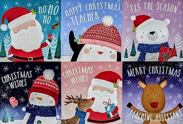 30 Mini Christmas Cards for Children with Envelopes – 6 Cute Festive Designs – Includes Teacher & Teaching Assistant Cards – 8 x 8 cm – Xmas Greeting – Merry Christmas Inside