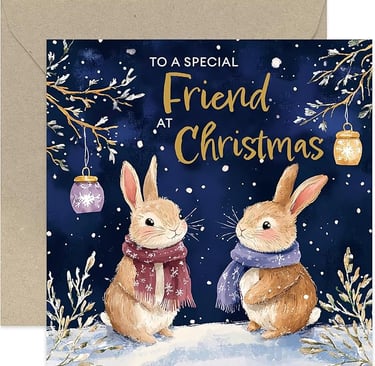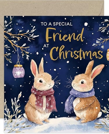Special Christmas Cards for Friends - Best Friend Christmas Cards - Cute Sweet Bunny Rabbit Festive Design - Luxury Christmas Greeting Cards for Her - For Women, Bestie, BFF