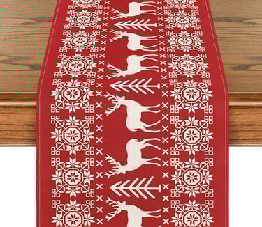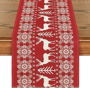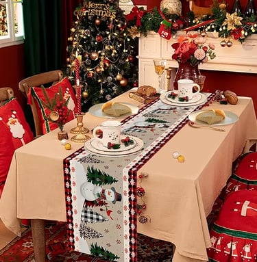 Christmas Table Runner,Christmas Decorations,33×200 CM Long Christmas Table Runners,Christmas Table Runner with Snowflakes Christmas Tree Snowman Pattern for Dining Party Decor.