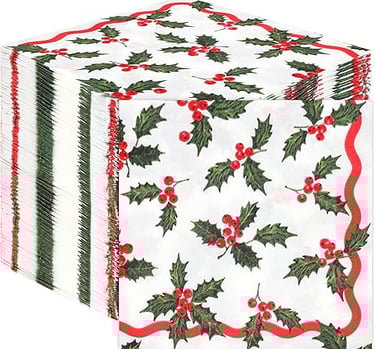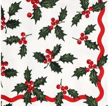 Talking Tables 20 x Recyclable Christmas Paper Napkins, Enchanting Holly White Themed Xmas Disposable Serviettes, Year Around Use, Decoupage, Catering, Patterned Napkin