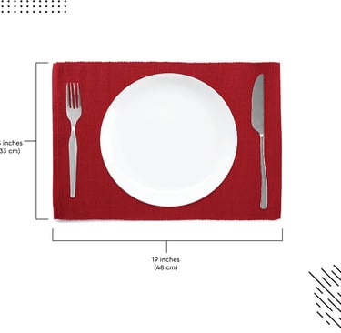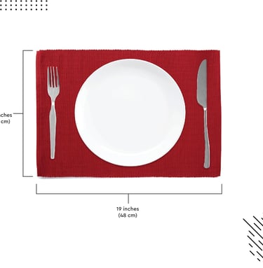 Encasa XO Dining Placemat Set of 6 | Solid Solid Red Color | Fine Ribbed Cotton Table mat | Size 48x32 cm |For Dining Table Fall Decoration, Holiday & Christmas Festivals - Machine Washable