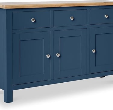 RoselandFurniture Farrow NAVY Sideboard for Living Room Large Storage Cabinet with Oak Top | Fully Assembled Painted 3 Door Solid Wooden Cupboard with 3 Drawers for Hallway or Dining Room 36D x 125W x 80H cm Options 7 Colours (as chest and bedside table in Bedroom)