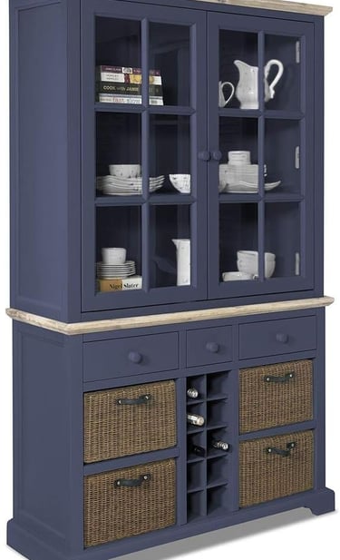 Florence Large Navy Blue Display Cabinet with Wine Rack and Storage Baskets Choice 5 colours 42D x 120W x 200H cm (Wood no Oak) Highly Rated