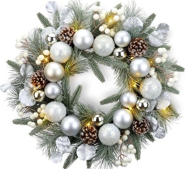 There are many good wreaths. It may look as if I selected a few to many with 10. The first is supplies for wreath makimg (just in case?). There are 4 with lights. 1 is for indoors. The other 3 are of different sizes which you need to decide on. (batteries). That leaves 5 of differeny sizes. So you may end up choosing two. Pick one (or both. One in the house looks good) they should last until year. Happy Christmas.