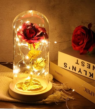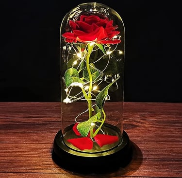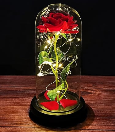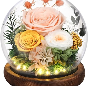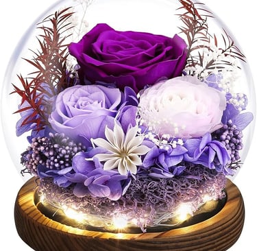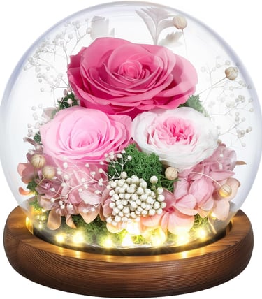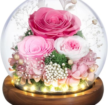 Emibele Christmas Eternal Rose Gifts for Ladies, Preserved Real Rose in Glass Dome with LED Light for Decoration, Flowers for Delivery Prime, Gifts for Women Wife at any tine of the year Red