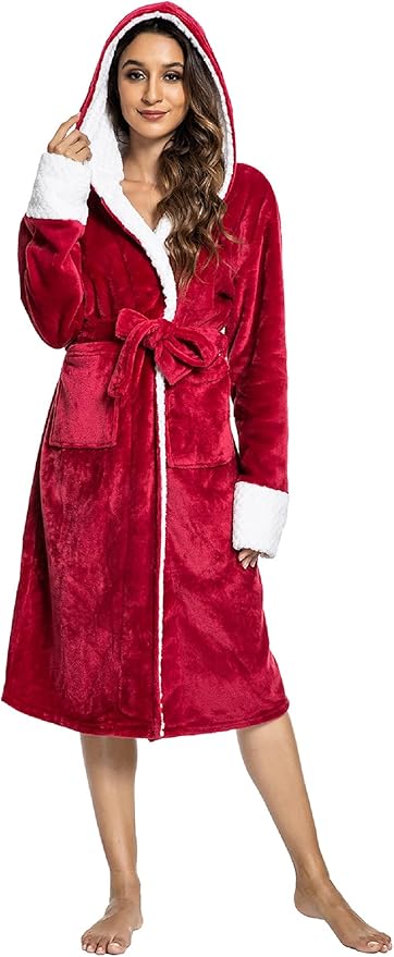 Ladies Robe Hooded Dressing Gown Fluffy Super Soft Plush Bath Robe for Women Housecoat Loungewear Bathrobe Loungewear Long Robe